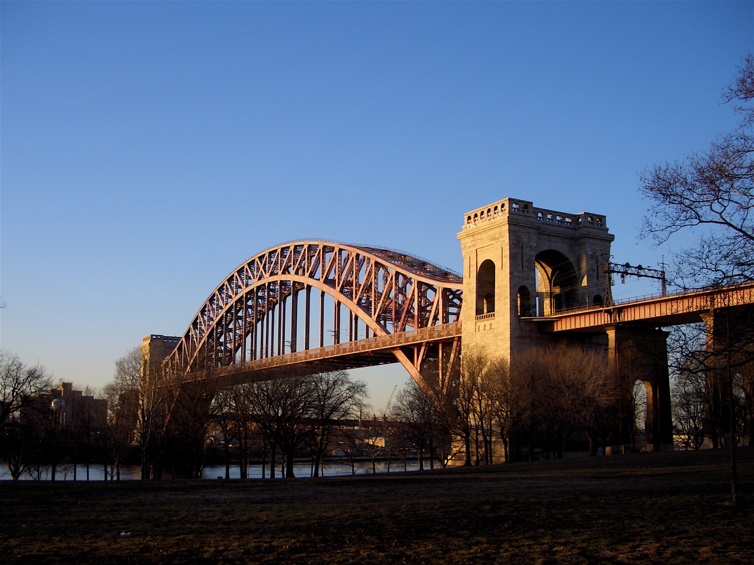 そして今回紹介します写真は、マンハッタンから水を隔てて他の地区を繋ぐ橋の写真です。マンハッタンの西側はハドソンリバー、その対岸がニュージャージー州、それを繋ぐのがジョージワシントン橋。一方マンハッタンの東側はイーストリバーで、対岸はクイーンズ。そこにかかるのはブルックリン橋、クイーンズボロ橋などです。これらの橋は、相当古い上に交通量が半端でないため、建設物的な視点ではかなり心細いのですが、橋を遠くから眺める分には美しく、魅力的です。私はクイーンズに住んでいるのですが、橋と水の見える景色が好きで、時折岸辺まで来ることがあります。